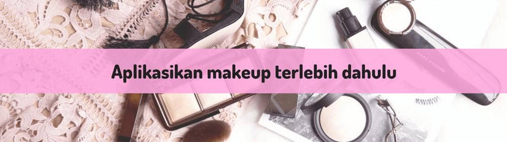 Jika kamu ingin menggunakan bulu mata palsu untuk mempercantik riasan, pastikan kamu sudah menyelesaikan seluruh rangkaian makeup-mu terlebih dahulu, khususnya makeup mata. Menggunakan bulu mata palsu sebelum menyelesaikan seluruh riasan hanya akan mempersulit dirimu ketika mengaplikasikan eyeshadow dan eyeliner.