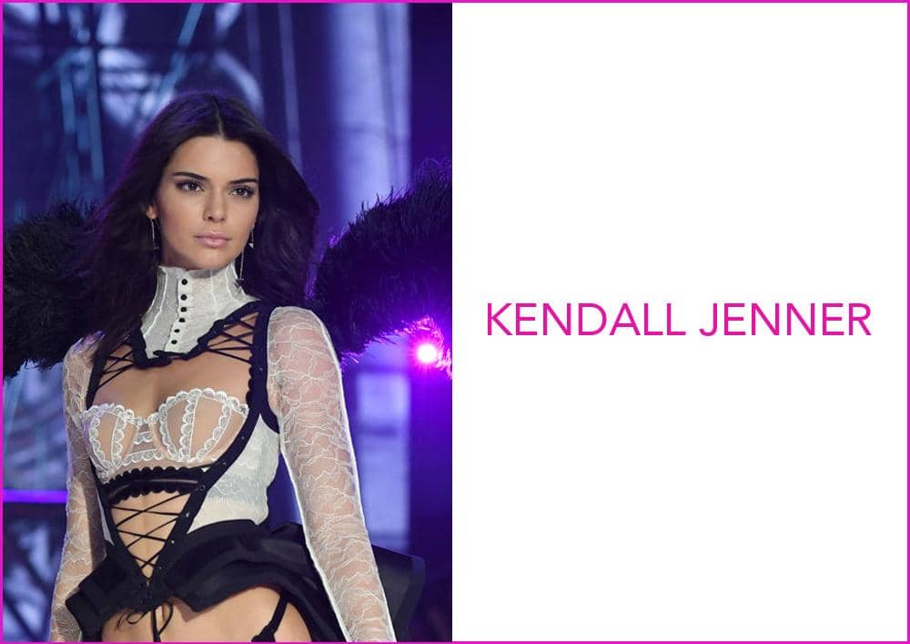 Pulasan lipstik bernuansa pink serta tampilan bulu mata lentik memperkuat penampilan Kendall Jenner dengan sayap pertamanya.