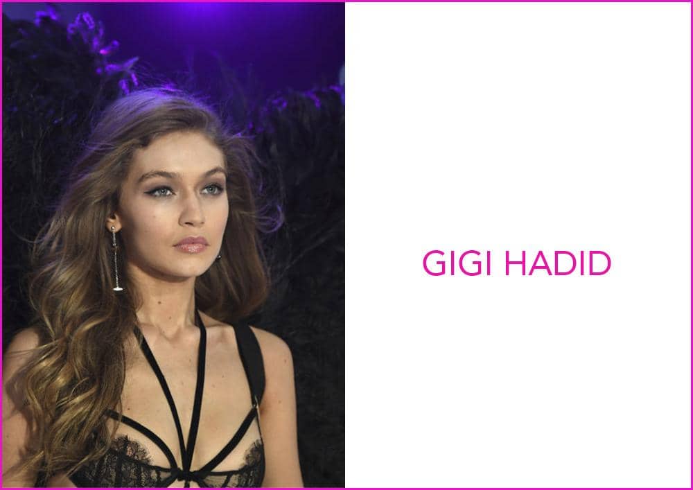 Gigi Hadid tampil dengan rambut bergelombang yang menjadi signature dari pertunjukkan Victoria Secret dan pulasan classic cat eye.