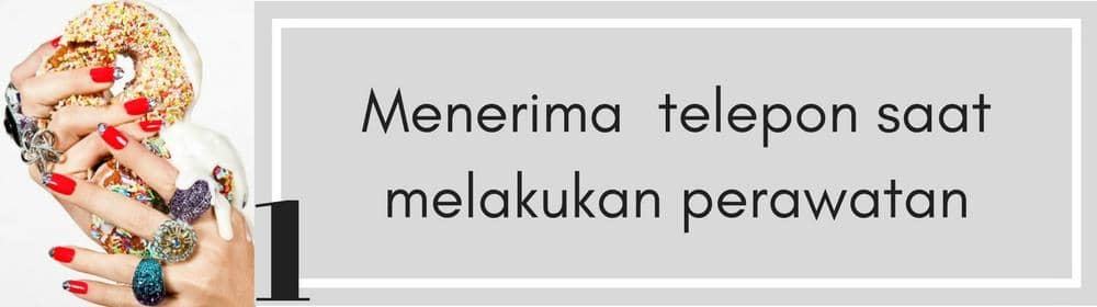 Menunggu perawatan selesai sambil menerima telepon adalah salah satu sikap yang kurang sopan, dan menyulitkan manicurist untuk berkomunikasi. Pasalnya, jika kuku rusak karena kamu menggenggam ponsel, manicurist nggak senang membereskannya.