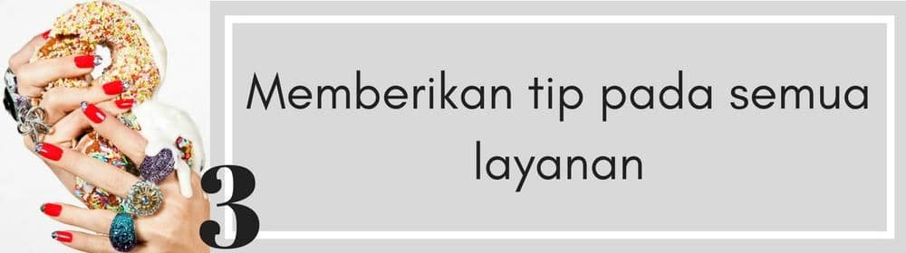 Perlu diingat, jika kukumu rusak hanya dalam waktu beberapa jam setelah manicure. Siapkan tip yang sesuai untuk manicurist-nya yah!