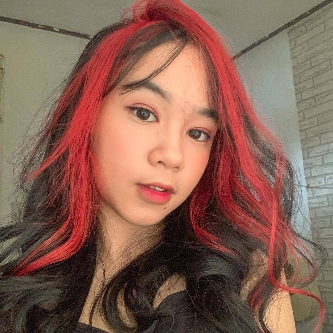 7. Alsa Aqilah tampil beda dengan warna merah di beberapa helai depan rambutnya. Ditambah dengan winged eyeliner, pink eyeshadow, dan red lip tint, penampilannya jadi makin kece!
