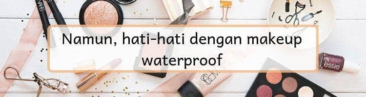 Sebagian makeup memiliki kandungan waterproof, yang artinya nggak akan pudar bila terkena air, seperti lipstik dan mascara. Maka ini yang harus kamu perhatikan, Bela. Melansir dari The National, makeup waterproof boleh jadi dapat membatalkan ibadahmu. Sebab, air wudu nggak dapat masuk ke dalam kulit karena terhalang oleh waterproof makeup. Jadi ketika ingin solat, disarankan untuk menghapus makeup terlebih dahulu.