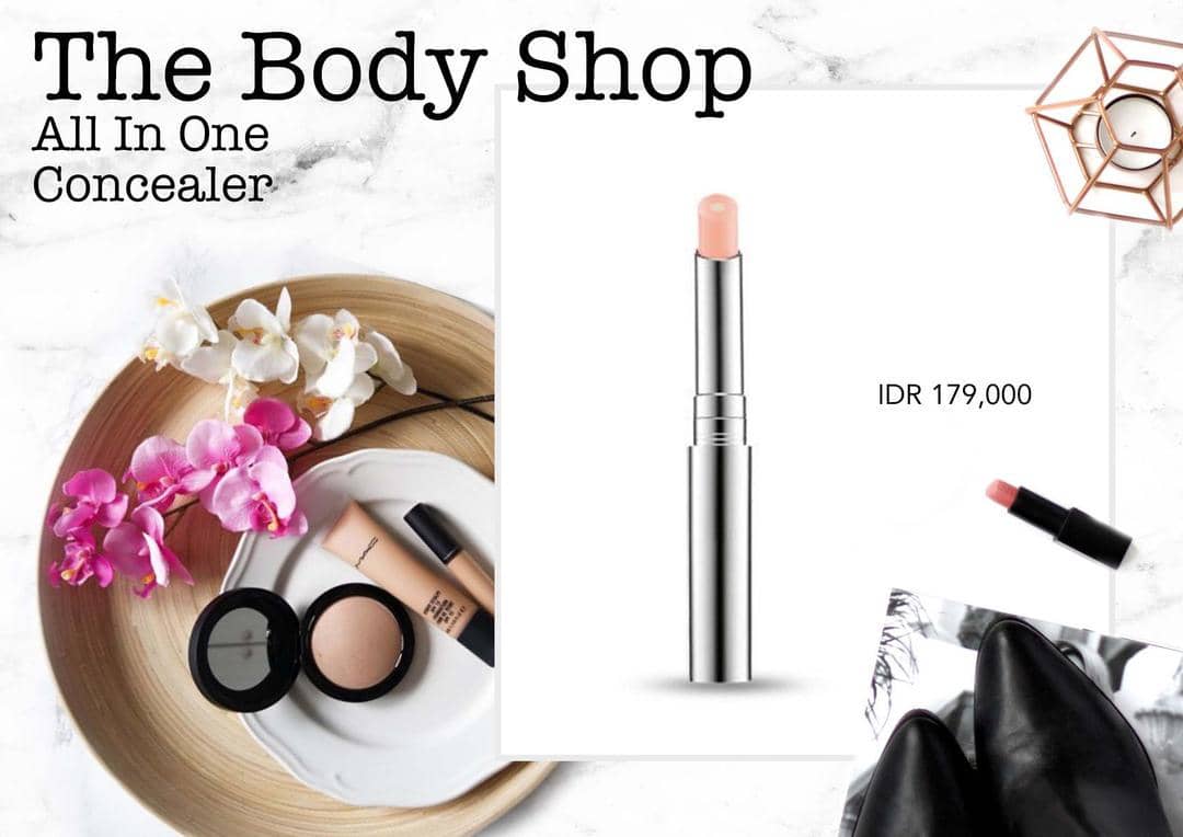 Untuk pilihan concealer dengan harga yang lebih terjangkau, kamu bisa mencoba produk concealer dari The Body Shop. Bentuknya seperti pen yang dikeluarkan dengan cara diputar sangat memudahkan pemakaian. Produk ini lebih cocok untuk kulit wajah berminyak karena hasil akhirnya cenderung kering. Meski memiliki hasil akhir cenderung kering, namun coverage-nya sangat baik.