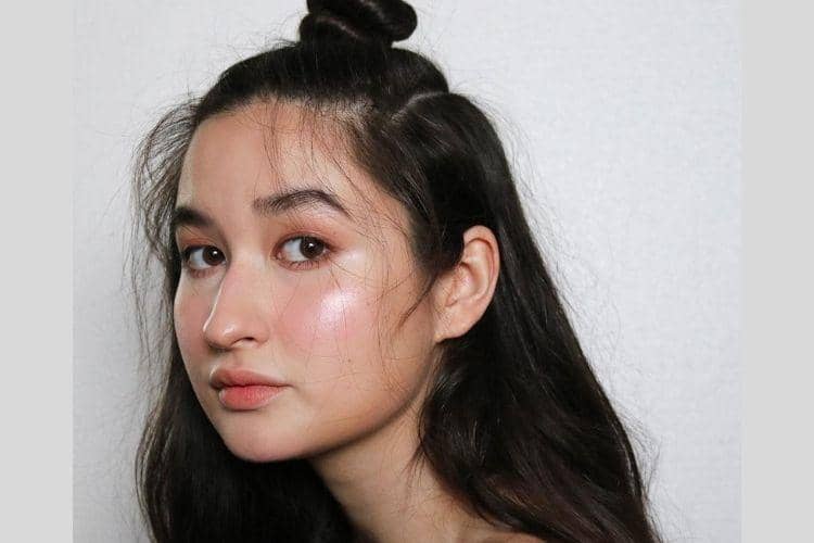 3. Tampil glowing dengan gaya makeup dewy dan tatanan rambut high hair bun yang bikin Stephanie mirip seleb K-pop.