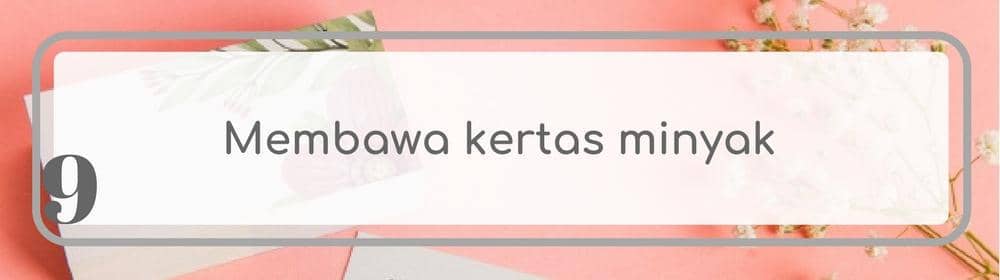Saat wajah berminyak, jangan menghilangkannya dengan mengaplikasikan bedak, Bela. Para Make Up Artist menyarankan agar kamu menggunakan kertas minyak untuk menghilangkan penampakan kilap ini. Kertas minyak nggak akan merusak riasanmu, kok.