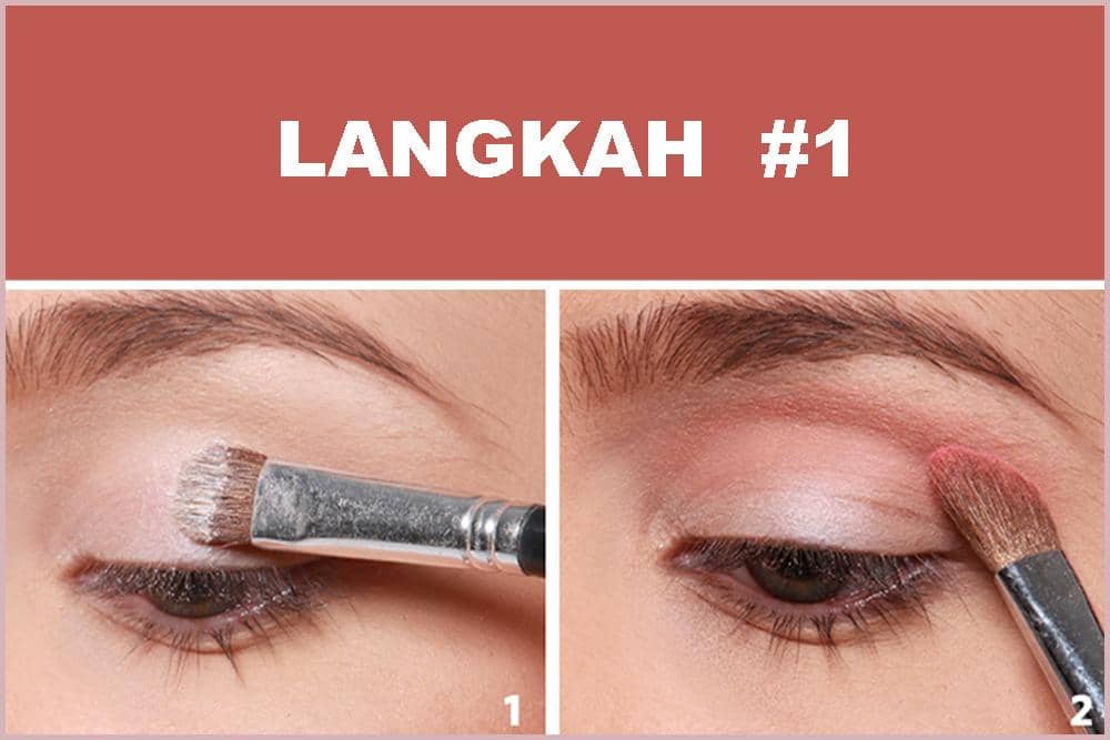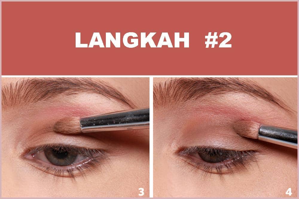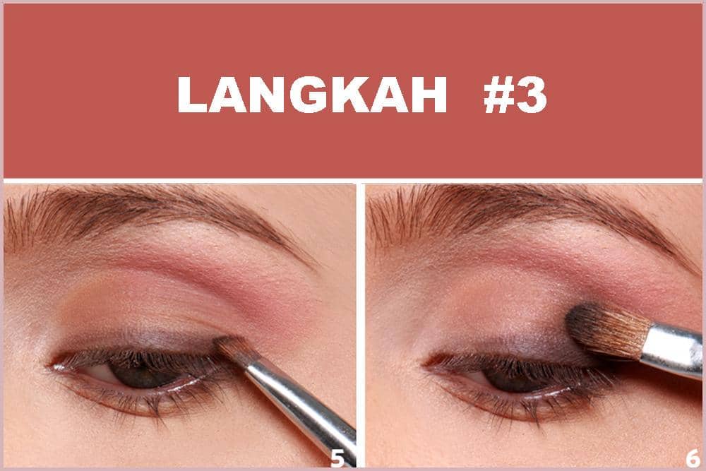 Pertama, aplikasikan eyeshadow dengan warna cream atau putih hanya untuk memberikan definisi pada kelopak matamu. Kamu bisa menggunakan brush. Setelah itu kamu gunakan angle shadow brush, pilih warna golden coral eyeshadow dan aplikasikan di bagian tengah hingga luar kelopak mata.