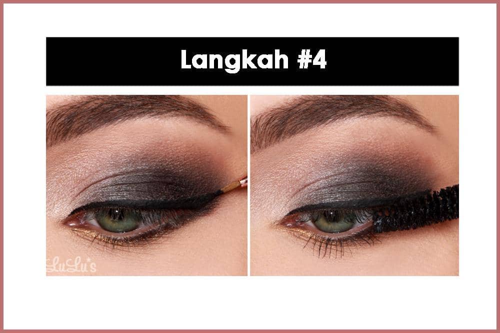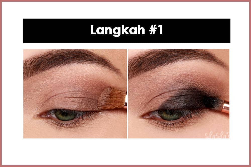 Langkah pertama yang harus kamu lakukan, pilihlah warna netral sebagai base eyeshadow di kelopak mata Selanjutnya gunakan pointbrush dan pilih warna hitam untuk untuk membingkai mata, aplikasikan di bagian ujung kelopak matamu.