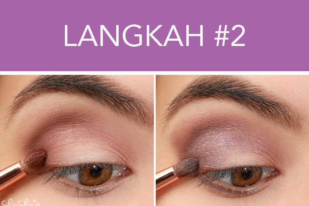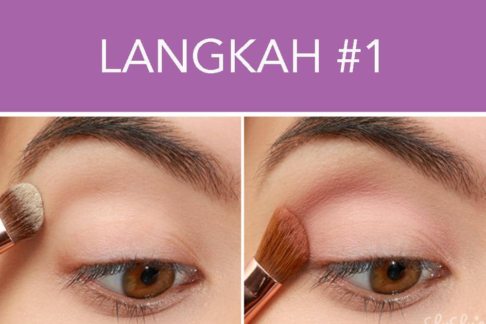 Mulai dengan mengaplikasikan eyeshadow warna beige ke bagian tulang alismu. Lalu tambahkan eyeshadow dengan warna soft pink pada kelopak mata atasmu.