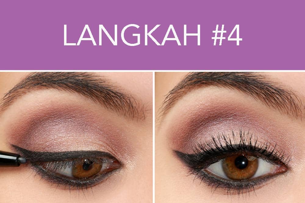 Berikutnya dengan menggunakan eyeliner pensil warna hitam, aplikasikan dengan hati-hati pada lower lash line kamu. Langkah terakhir pulaskan beberapa layer maskara pada bulu matamu.