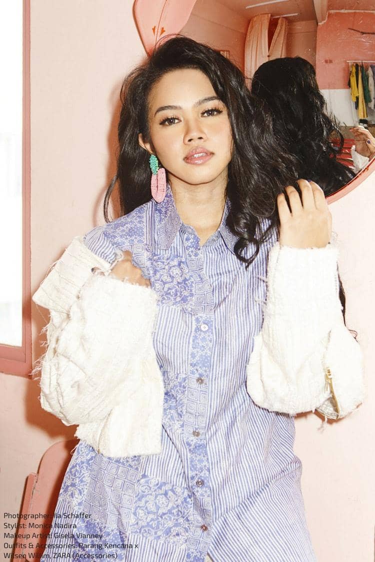 "Untungnya aku lahir di keluarga yang memiliki gen berambut tebal semua. Jadi, aku sebenarnya nggak terlalu ribet soal rambut. Tapi, karena tiap manggung harus styling, jadi aku selalu melakukan perawatan rambut. Minimal aku masker rambut seminggu sekali. Terus selalu pakai kondisioner sehabis keramas. Wajib banget. Kalau untuk mengeringkan rambut, aku biasanya cukup pakai handuk. Tapi, kalau emang buru-buru aku pakai hair dryer dengan suhu dingin, soalnya kalau suhu panas takut rusak dan kering."