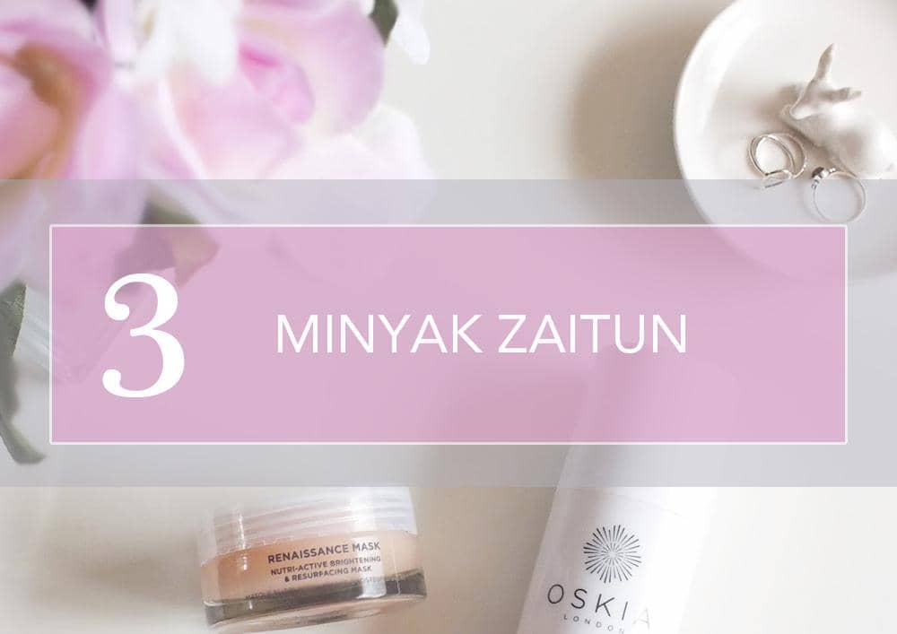 Selain dapat digunakan sebagai pelembap, minyak zaitun juga bisa dipakai sebagai makeup remover, Bela. Disadur dari Michelle Phan, untuk menggunakannya kamu bisa mencampur 1/2 cup Extra Virgin Olive Oil dengan 1 botol Aloe Vera Water atau Air Mineral. Kocok botol yang sebelumnya sudah ditutup agar minyak dan air tercampur, kemudian tuangkan sedikit ke atas kapas yang akan digunakan untuk menyapu makeup di wajah. Wajah kamu pun bersih dan lembap dalam sekali usap!
