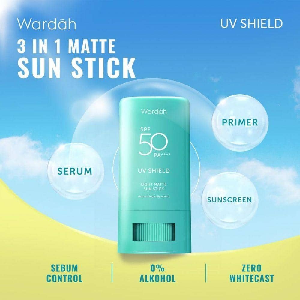 Sunscreen terbaru dari Wardah ini memiliki kemasan stick warna tosca yang cantik. Untuk mengeluarkan produknya, kamu hanya perlu memutar bagian bawahnya. Dilengkapi dengan SPF 50 PA ++++ , produk ini mampu menjaga kulit dari sinar UV A/ UV B serta pancaran blue light. Mudah diaplikasikan dan gak lengket. Hasil akhirnya matte sehingga cocok untuk pemilik kulit berminyak.