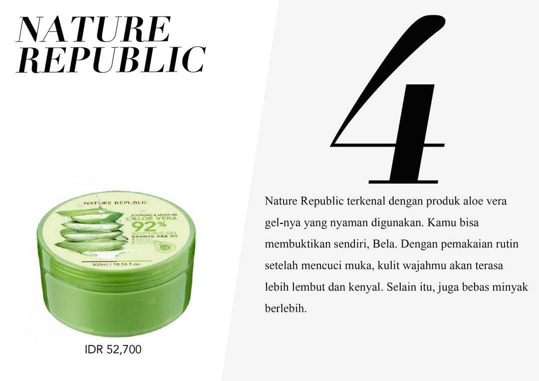 Mungkin Bela sudah tidak asing lagi dengan produk aloe vera gel (gel lidah buaya) karena sudah banyak beredar di pasaran. Kalau bingung harus memilih yang mana, coba beberapa rekomendasi produk aloe vera gel di bawah ini saja, Bela!