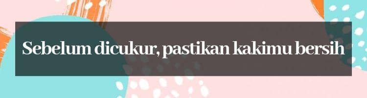 Untuk menghindari masuknya bakteri dan kuman saat proses mencukur, sebaiknya bersihkan bagian kakimu yang akan dicukur menggunakan sabun antiseptik dan pastikan agar kakimu benar-benar bersih.