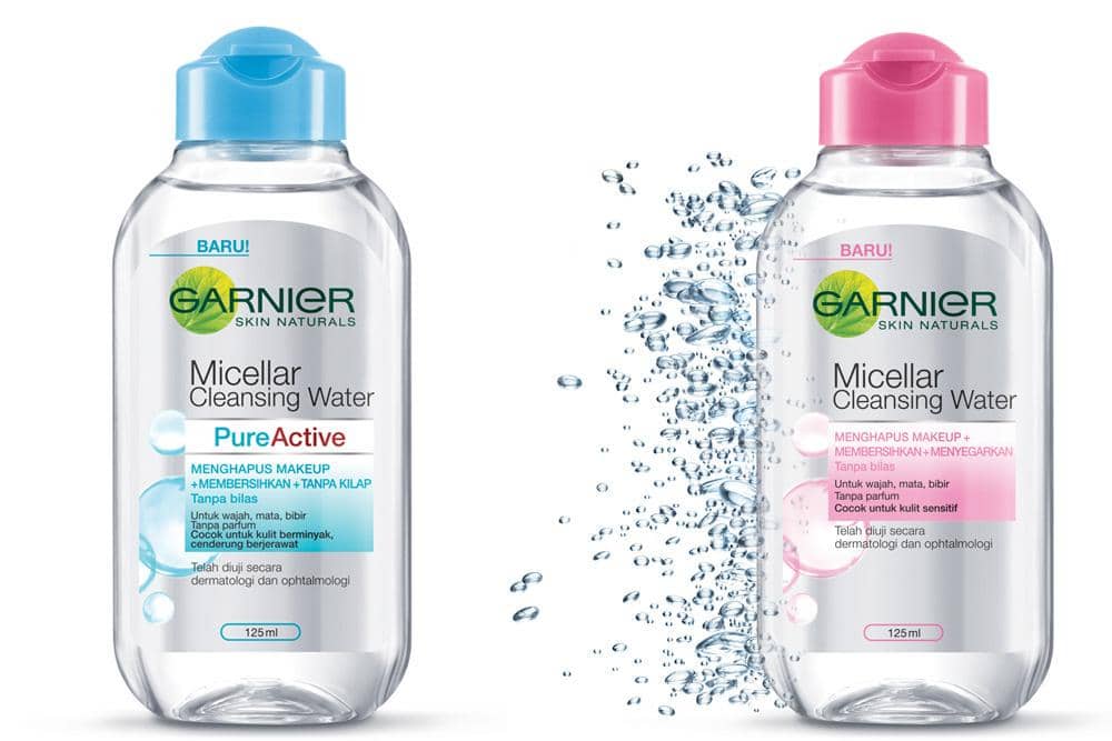 Sedangkan kalau Micellar Water, produk ini dapat mengangkat kotoran, minyak, dan makeup dengan cepat, gampang, dan tidak perlu dibilas dengan air. Keuntungan lainnya, kamu tidak perlu pakai produk lain lagi untuk menyegarkan wajah, karena produk ini juga bisa menjadi penyegar wajah. Satu produk dengan beragam manfaat. Selain sangat mudah digunakan dengan langkah 3T yaitu tuang, tekan dan tarik. Hasilnya, langsung bersih hanya dengan 1 langkah aja. Produk ini memiliki 2 varian, yaitu Garnier Micellar Cleansing Water untuk kulit normal & sensitif dan Garnier Micellar Cleansing Water Pure Active untuk kulit lebih berminyak.
