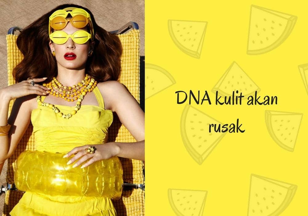Matahari memencarkan sinar UV A dan UV B. Pada saat terpapar, tubuh akan memproduksi melanin yang dapat memberi warna pada kulit untuk melindunginya. Meski terlihat cantik, nyatanya perubahan warna ini menunjukan bahwa kulit sedang terbakar. Maka dari itu penting untuk mengoleskan krim tabir surya untuk menjaga kulit tetap sehat dan terlindungi. Bila kamu nggak menggunakannya, sinar UV B akan menembus hingga lapisan terdalam kulit dan merusak sel kulit didalamnya.