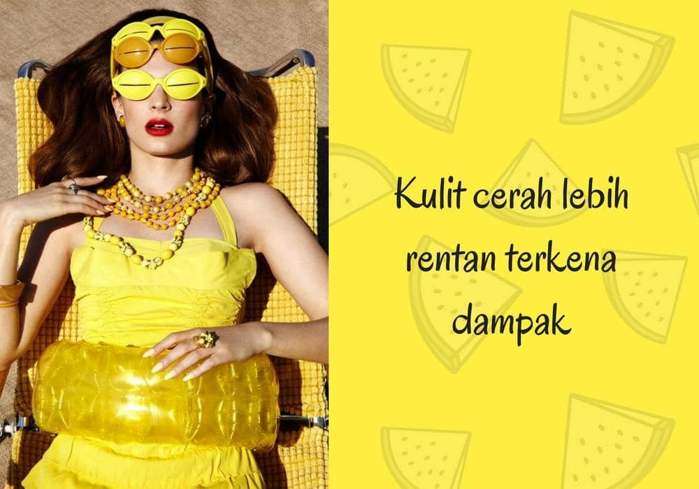 Bahaya paparan sinar matahari akan dirasakan oleh semua tipe kulit yang nggak terlindungi. Kamu yang memiliki kulit cerah atau gelap harus rutin merawat dan melindunginya. Meski begitu, warna kulit yang cerah nyatanya leibih rentan terkena kanker kulit. Hal ini terjadi karena pigmen melanin yang diproduksi nggak sebanyak pada kulit dengan warna yang lebih gelap. Sebaiknya, gunakan perlindungan esktra dan kenali tipe kulitmu untuk mengenal cara perawatannya.