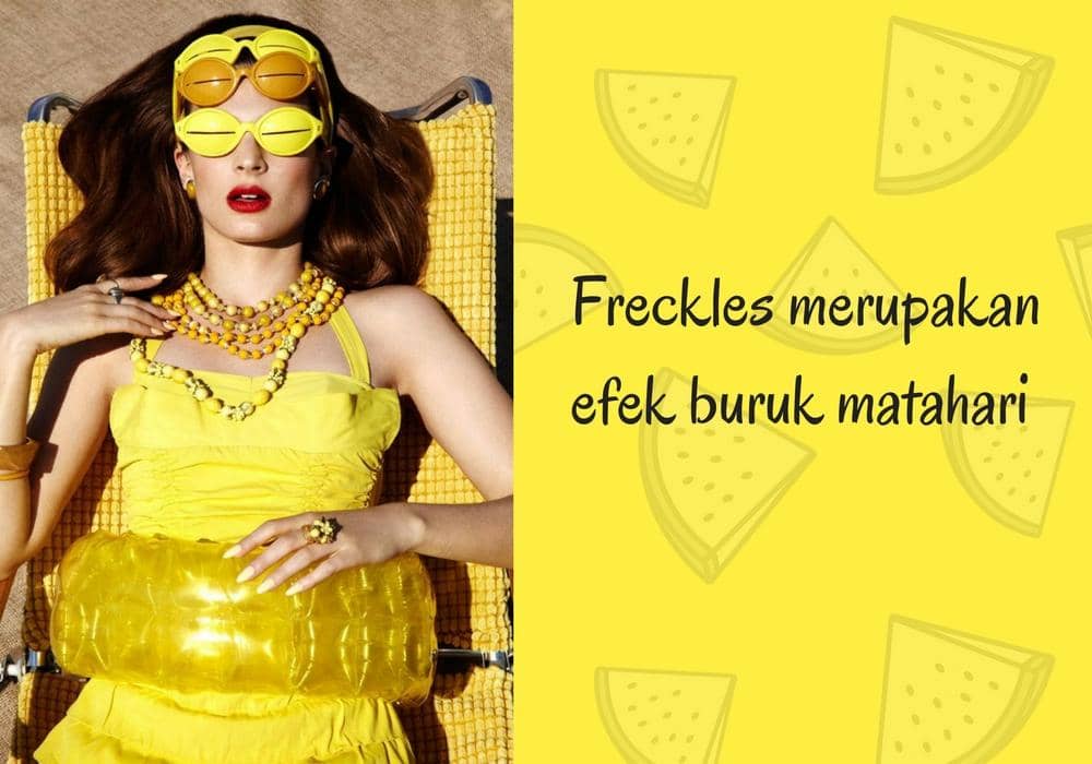Akhir-akhir ini, banyak tampilan makeup fake freckless yang terinpirasi dari bintik hitam pada kulit. Freckles bisa muncul akibat hormon, tanda lahir, atau bahkan dampak yang terjadi akibat paparan sinar matahari. Pada penyebab terakhir, freckles sering muncul pada kulit yang nggak menggunakan pelindung saat berjemur.
