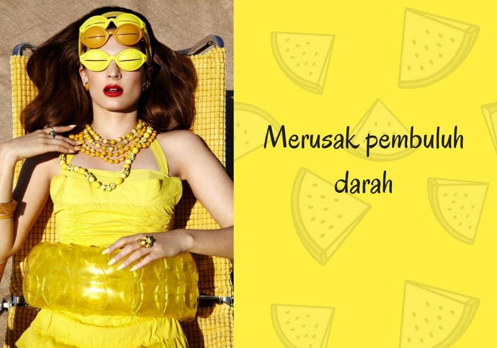 Berada di dekat lapisan kulit paling luar, pembuluh darah juga mudah terkena dampak dari sinar matahari. Saat terpapar, tubuh akan berusaha mengontrol kulit untuk tetap dalam temperatur normal dan menenangkannya. Bila terlalu lama berjemur, kamu membuat pembuluh darah bekerja terlalu kuat dan dapat merusaknya.