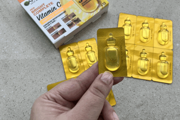 Dari tiga pilihan yang tersedia, saya memilih ukuran multidose yang berisi 12 kapsul. Penggunaannya di pagi dan malam hari, setelah saya mencuci wajah, menggunakan toner dan hydrating serum, baru saya menggunakan Garnier Bright Complete Ampoule Serum. Baru setelahnya saya tutup dengan pelembap dan sunscreen di pagi hari dan pelembap di malam hari.