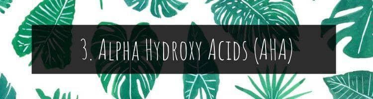 Cukup unik, kandungan skincare untuk kulit berjerawat yang satu ini dihasilkan oleh asam yang berasal dari buah-buahan yang memiliki kandungan gula. Dengan memiliki cara kerja mengangkat sel kulit mati dan menggantikannya dengan sel kulit baru atau yang biasa disebut proses eksfoliasi. Kandungan AHA cukup populer baru-baru ini dan tentunya menjadi incaran banyak orang. Selain itu, AHA juga mampu untuk mengurangi bekas jerawat pada wajah.