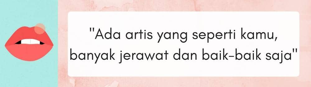 Tapi artis punya biaya yang cukup untuk menemui dokter dan menyembuhkan maslaah wajahnya, atau membayar Make Up Artist untuk menyamarkan masalah kulit ini dengan sempurna. Keadaan satu sama lain nggak sama, Bela.