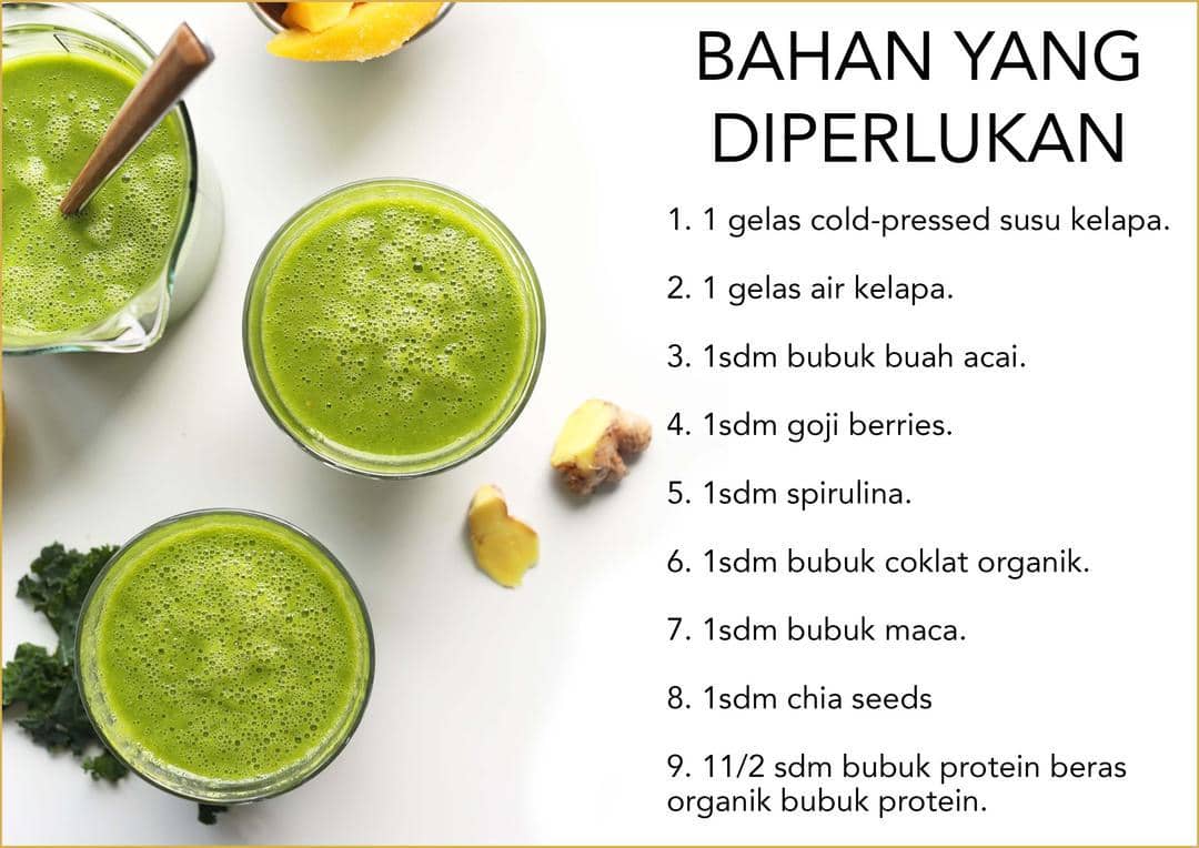 Selain itu, Miranda Kerr juga rajin mengkonsumsi green smoothie setiap pagi yang mampu membasmi jerawat, menghaluskan kulit, dan kulit jauh terlihat lebih muda. Tidak perlu menu salad, dengan green smoothie yang sangat mudah dicerna membuat kulit sehat terawat. Berikut ini resep green smoothie buatan Miranda Kerr!