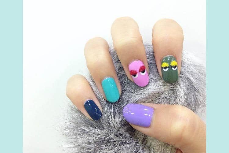 Untuk si feminin, kamu bisa memulas nail polish berwarna pastel pada kukumu. Tempelkan permata untuk mempermanis kuku. Tidak lupa aplikasikan pom-pom di salah satu jari. Sempurna!