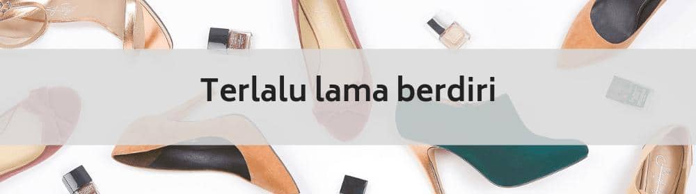 Terlalu lama berdiri dapat menyebabkan kulit kaki khususnya tumit menjadi tebal dan keras yang nantinya bisa menjadi pecah dan mengelupas. Satu-satunya cara untuk mencegah kondisi ini adalah memakai alas kaki yang empuk. Ketika berdiri dalam waktu yang lama pun juga usahakan untuk bergerak dan berjalan beberapa lama untuk beristirahat.