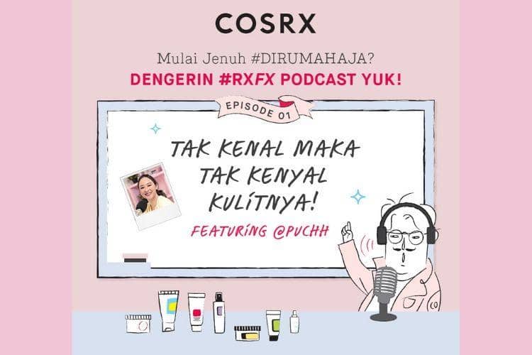 perawatan kulit wajah, dan salah satunya caranya adalah melalui Podcast. Dengan memberikan edukasi langsung melalui media suara, kami berharap semakin banyak orang yang memahami betapa pentingnya perawatan kulit wajah, serta mampu memahami permasalahan kulit wajahnya dengan lebih jelas sehingga semakin banyak yang dapat merasakan #RXFX kedepannya,” papar Diazca Adizsa, selaku Brand Manager dari COSRX Indonesia.