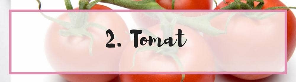 Kandungan lycopene dalam tomat bisa mencerahkan kulit, dan tomat juga kaya akan vitamin C yang bisa membantu menghilangkan noda dan jerawat. Tomat juga memiliki antioksidan yang bisa mengatasi kerut serta radikal bebas yang merusak kulit.