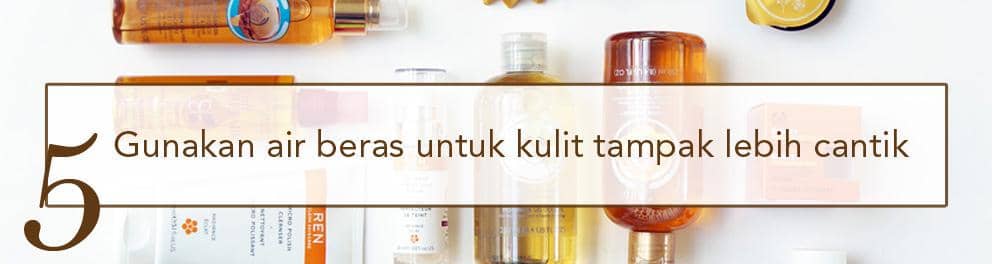 Selama berabad-abad, perempuan Asia menggunakan air beras untuk meningkatkan kecantikan kulit dan rambut. Mencuci wajah menggunakan air beras secara rutin dapat membuat kulit halus dan lembut serta semakin menonjolkan warna kulit secara alami. Air beras juga bisa meningkatkan kelembapan rambut. Caranya bisa dengan membilas rambut menggunakan air beras setelah menggunakan sampo.