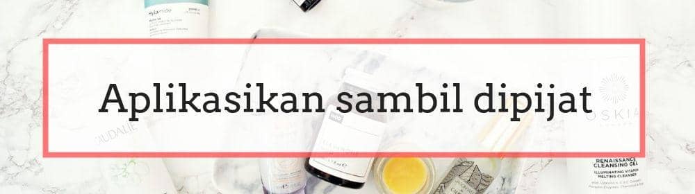 Banyak yang menggunakan face oil dengan cara menepuk-nepukannya pada wajah. Cara ini sebenarnya salah lho. Aplikasikan sedikit saja pada seluruh wajah sambil dipijat dengan gerakan ke atas. Selain membuat produk menyerap secara maksimal, cara ini juga membuat aliran darah di sekitar wajah jadi lebih lancar sehingga wajah tampak lebih cerah dan bercahaya.