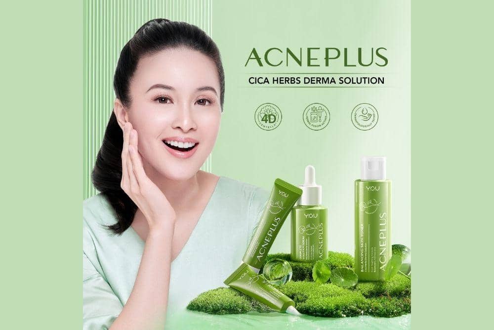 No worries! Y.O.U Beauty hadir dengan seri terbaru mereka yaitu AcnePlus yang terdiri dari Balancing Skin Toner, Complete Solution Serum, Triple Action Spot Care, serta Skin Defense Moisturizer. Setiap produk tersebut memiliki kandungan Centella Asiatica dan Herbal Fusion Actives sebagai anti bakteri agar dapat meningkatkan regenerasi kulit bekas jerawat dan memperbaiki skin barrier.