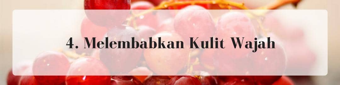 Buah anggur, iris menjadi dua buah bagian, kemudian oleskan pada wajah dan diamkan lima belas menit. Gunakan secara rutin setiap dua kali sehari pagi dan malam sebelum tidur. Dijamin kulit kamu akan lebih lembut.