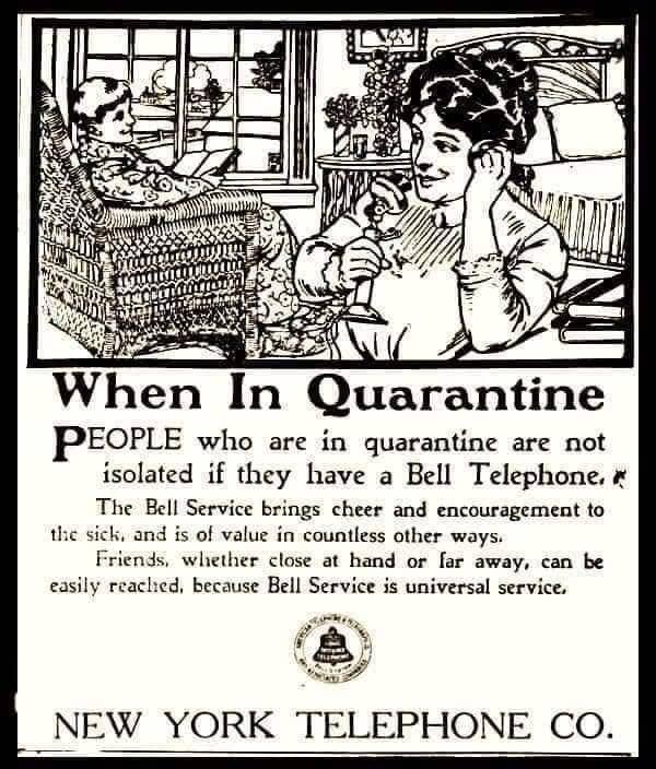 3. Meskipun berada di rumah, komunikasi dengan orang luar harus tetap berjalan untuk berbagi informasi dan mengurangi rasa bosan. Belum ada internet seperti saat ini, perusahaan telepon menjadi primadona kala itu karena bisa menghubungkan orang-orang yang sedang menjalani karantina di rumah masing-masing