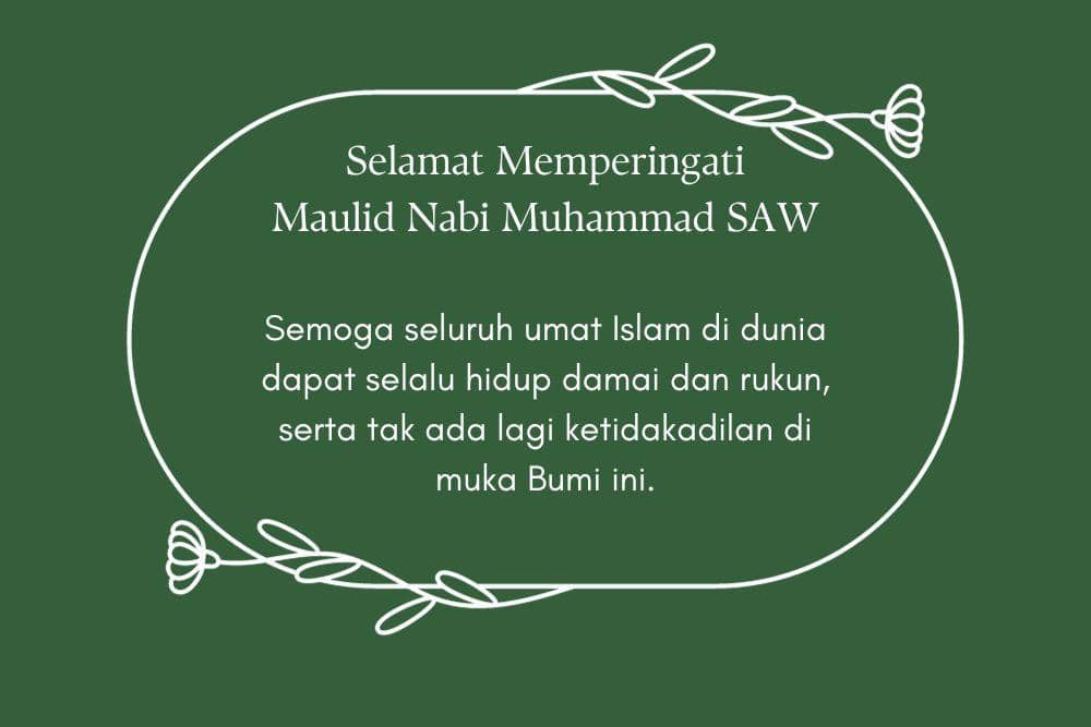 Tidak hanya perayaan, Maulid Nabi Muhammad juga dapat dilakukan dengan saling berkirim doa dan ucapan yang baik-baik. Berikut kata-kata Maulid Nabi Muhammad SAW dalam bahasa Inggris dan Indonesia yang bisa kamu gunakan.