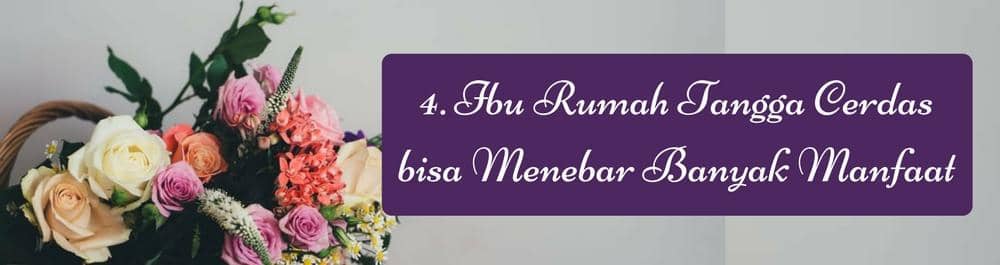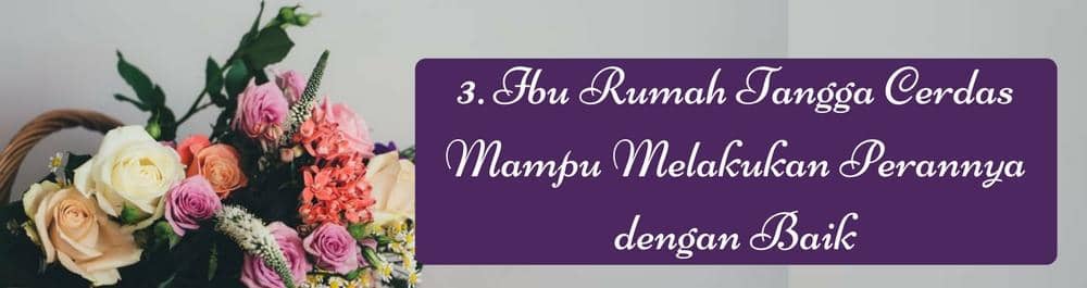 Dengan memilih menjadi ibu rumah tangga berarti harus siap bekerja dari pagi buta hingga malam gulita. Sebagai seorang istri, ibu, dan pengurus kehidupan rumah tangga, ibu rumah tangga harus bisa membagi waktu secara cerdas hingga semua tugas bisa terlaksana dengan baik. Sebagai ibu cerdas, ia bisa mendidik anak-anak dengan baik. Sebagai istri, ia bisa melayani dan memenuhi kebutuhan suami dengan baik. Pun sebagai penanggungjawab kehidupan rumah tangga, ia bisa melakukan tugas-tugas rumahan dengan baik pula.