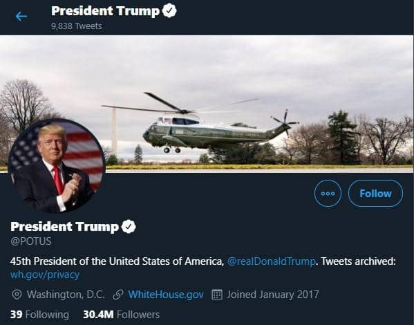 Akun @realDonaldTrump digunakan Donald Trump untuk mengunggah pendapat pribadinya. Sementara kegiatan dan pendapat yang bersifat kenegaraan diunggah melalui akun @POTUS.