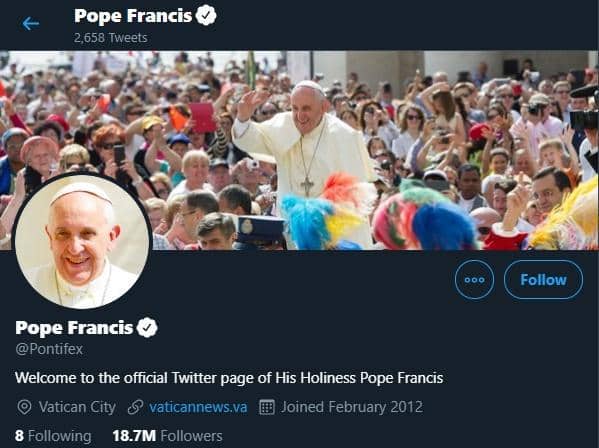 Bukan hanya satu, Paus Fransiskus memiliki sembilan akun resmi di Twitter. Akun tersebut dibuat untuk mengunggah pendapat dan pemikiran Paus dengan bahasa yang berbeda. Bahasa yang digunakan antara lain Latin, Bahasa Belanda, Bahasa Arab, dan Prancis. Jika diakumulasikan, sembilan akun Paus Fransiskus memiliki 50 juta followers di Twitter.