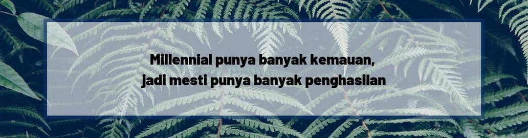 Milenial memang selalu menginginkan pendapatan yang lebih tinggi. Bukan berarti mata duitan, tapi hal ini terjadi karena tuntutan akan kebutuhan turut berkembang. Belum lagi adanya biaya kebutuhan sosial yang lama-lama ikut menjadi gaya hidup seperti nongkrong, nonton, maupun ngopi cantik.