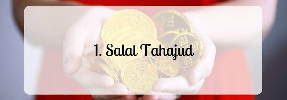 Meski berat, namun melaksanakan salat tahajud secara rutin dapat memperlancar rezeki kita sehingga kita bisa mendapatkan apa yang kita inginkan. Salat tahajud biasanya dilaksanakan pada sepertiga malam atau pada pukul 2-3 dini hari. Setelah salat tahajud selesai dilakukan, lanjutkan dengan membaca surat Al-Kautsar sebanyak 99 kali untuk memperlancar rezeki.