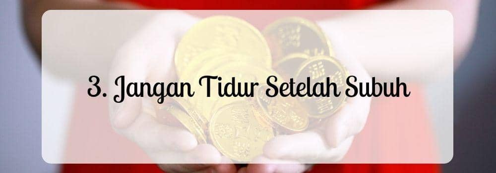 Satu hal yang ternyata dapat menghambat rezeki kita adalah tidur selepas salat subuh. Setelah salat subuh, ada baiknya kita mengisi waktu dengan kegiatan yang bermanfaat. Seperti tadarus Al Quran atau mempersiapkan diri untuk bekerja. Jangan lagi tidur setelah subuh ya. Selain bisa membuat kita kesiangan, hal ini juga akan menghambat rezeki.