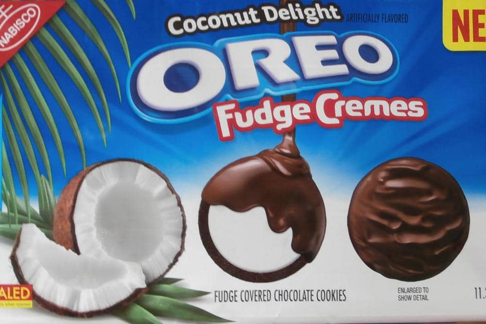 Ini nih oreo favorit Popbela. Oreo krim rasa kelapa dibalut dengan cokelat. Enak sepertinya.