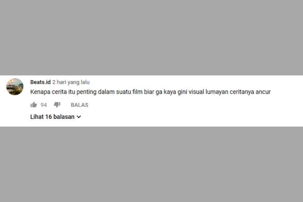 “Beats.id” berkomentar dua hari lalu (15/12). Baginya, visual menjadi kelebihan dari video ini tetapi jalinan cerita menjadi salah satu PR buat para kreatornya.