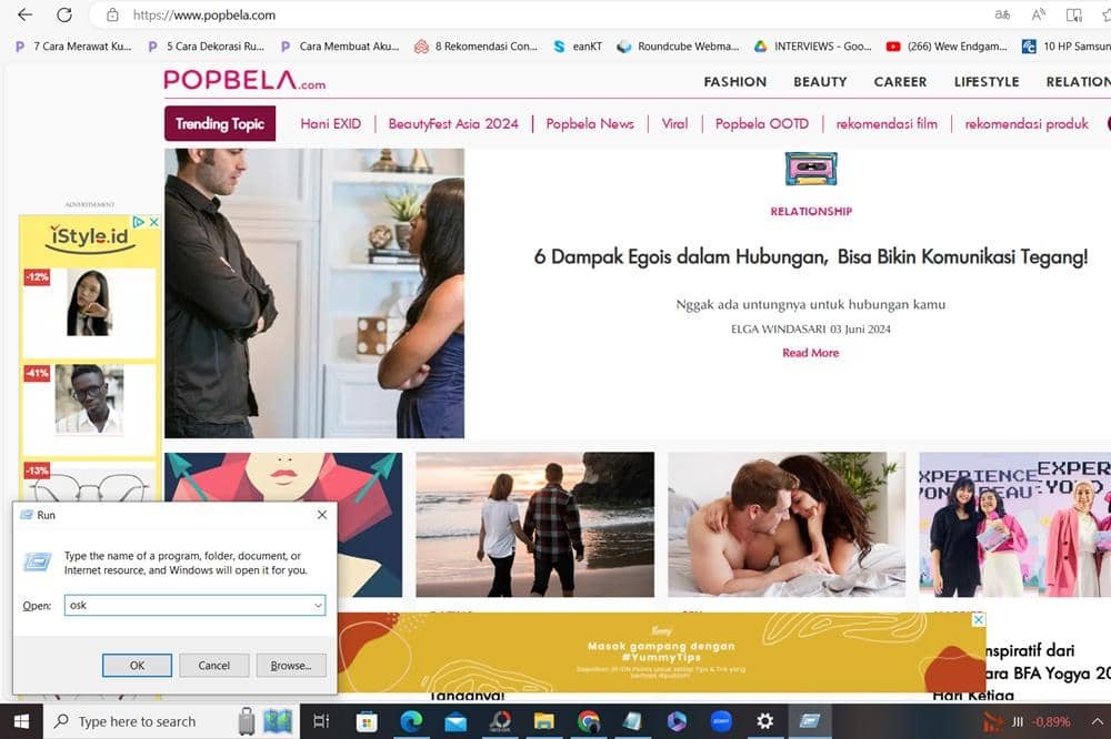 - Ketik OSK pada kotak Dialog Run, lalu tekan Enter atau klik Ok.