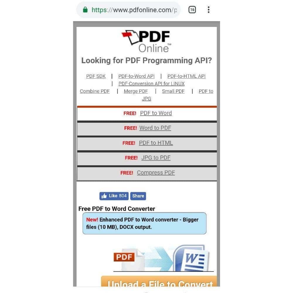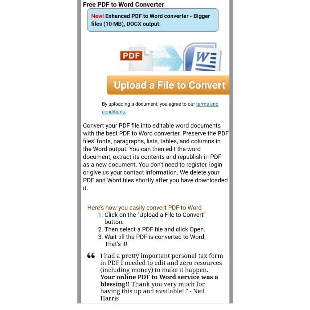 Langkah 2: Scroll ke bawah dan klik tombol Upload a File to Convert lalu pilih file PDF yang ingin kamu ubah formatnya