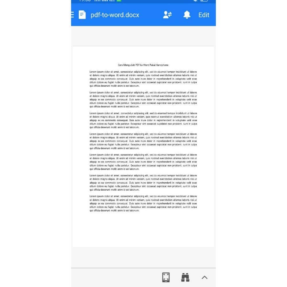 Jangan pernah meremehkan smartphone ya. Sebab meskipun ukurannya kecil, ia dapat berperan besar dalam membantumu menyelesaikan pekerjaan. Salah satunya membuat dokumen dan mengubahnya ke dalam format yang lain. Misalnya, jika kamu memiliki dokumen dalam bentuk PDF, hanya dengan satu sentuhan jari, kamu dapat mengubahnya dalam bentuk Word dan mengeditnya sesuai dengan yang kamu inginkan.