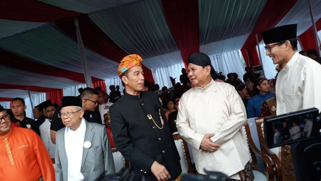Pasangan Calon Presiden dan Wakil Presiden Nomor 2, Prabowo dan Sandiaga Uno memang tiba lebih awal. Menurut pantauan, Pasangan Calon Presiden dan Wakil Presiden nomor 1, Jokowi dan Maruf Amin baru meninggalkan Istana Merdeka menuju Bidakara pada pukul 19:09 WIB.